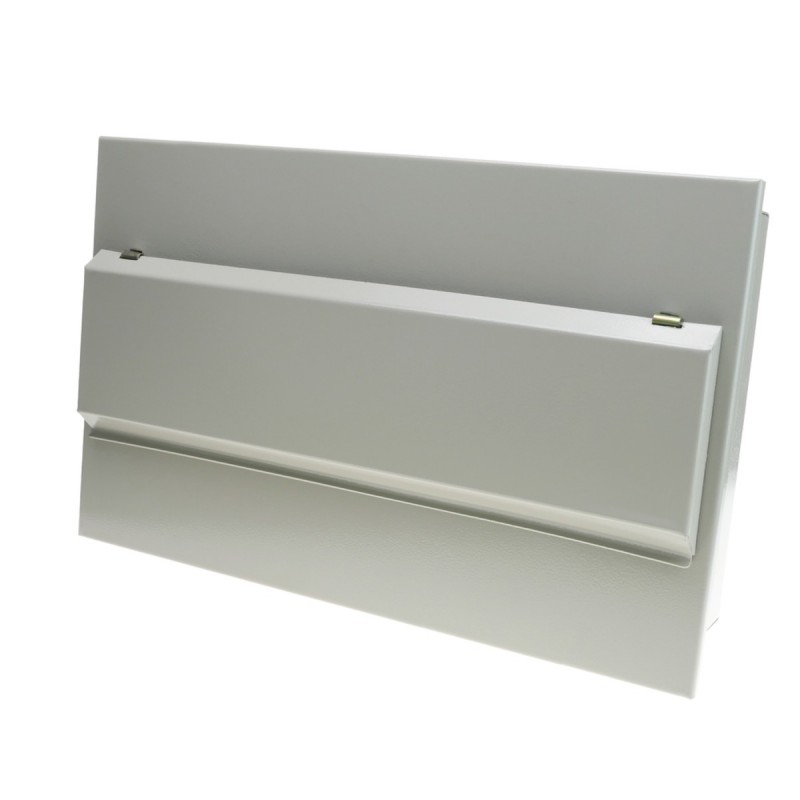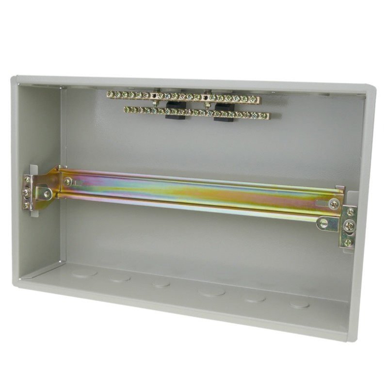 Caja de distribución de para empotrar de metal IP40 de 16 módulos en línea. La caja de distribución permite el montaje de módulos estándar de 18mm de ancho, sobre un carril DIN. Robusta caja de distribución fabricada en metal. Diseñada para ser instalada en la pared, en un orificio rectangular.