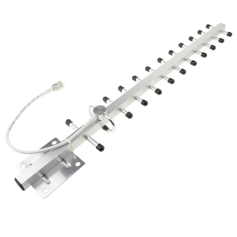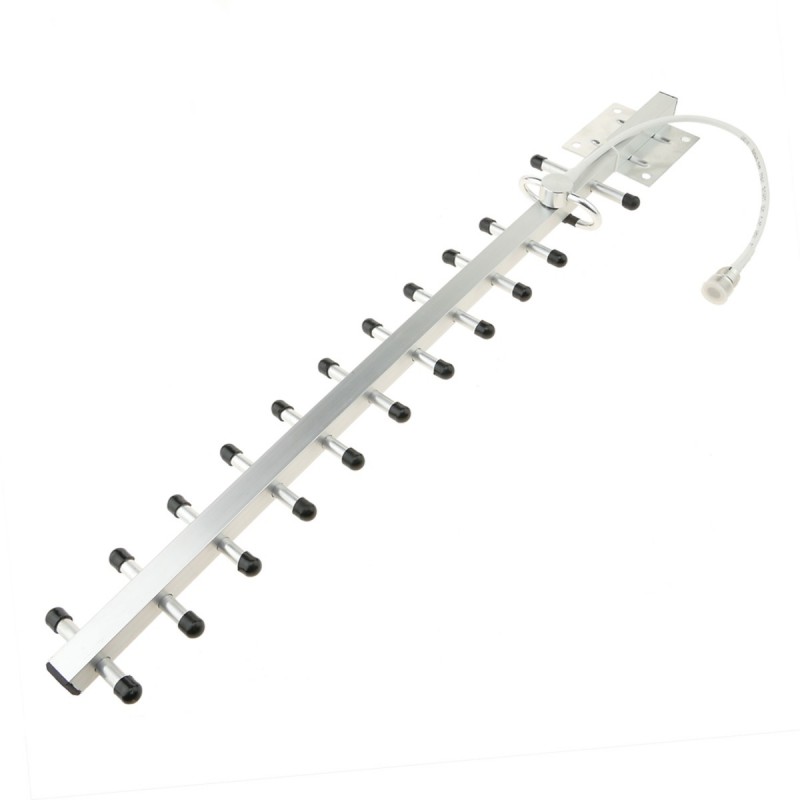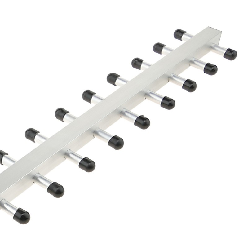 Antena exterior tipo yagi (575mm) con sistema de fijación a pared o poste tubular. Dispone de cable coaxial RG58 de 20cm terminado en conector N-hembra. La antena yagi se instala en el exterior para la captación de la señal GSM donde haya cobertura. Frecuencia de operativa de 2100 MHz (1910-2170 MHz). Antena para ser utilizada con la gama de productos #GW0x (repetidores de telefonía 3G).