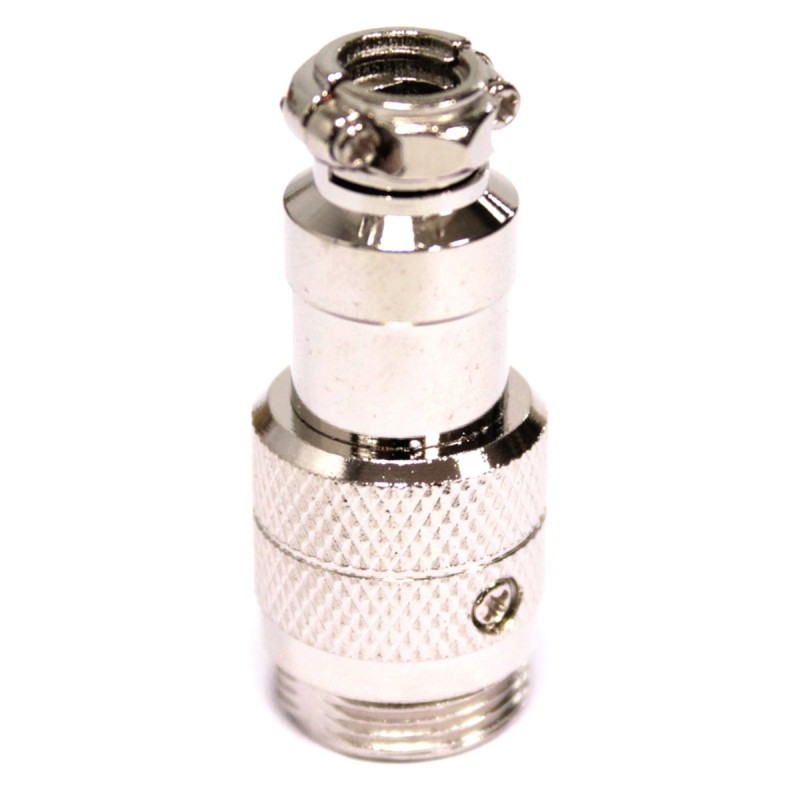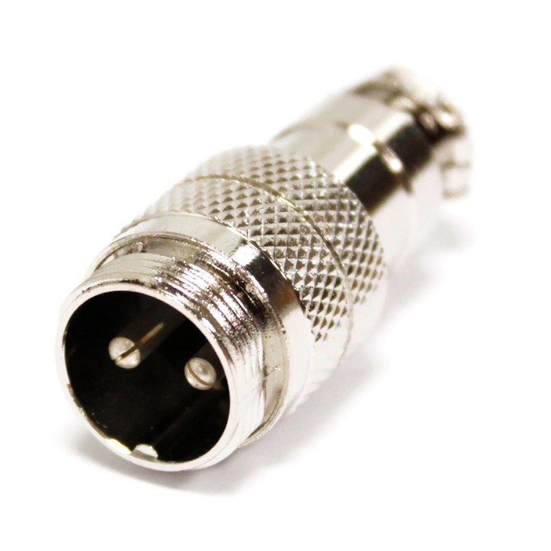 Conector micro o tambien llamado conector de aviación. Modelo aéreo para crimpar a extremo de cable y de género macho y con 2-pin. Se trata de un conector redondo, metálico y robusto. Ideal para realizar sus propias instalaciones y conexiones con total fiabilidad y durabilidad. La conexión es estable pues dispone de rosca para fijación. Diámetro de los pins de 1,4 mm. Corriente nominal de 5A. Tensión AC de 125V. Voltaje máximo RMS de 200 VAC. Rigidez dieléctrica (1 minuto) de 1000 VAC. Resistencia de aislamiento a 500 VDC de 1000 Ohms. Resistencia de contacto máximo de 3 microOhms.