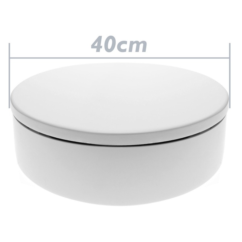 Base giratoria motorizada. Se trata de una plataforma que gira lentamente y de forma sostenida, al ser activada. Se conecta a la red eléctrica. Ideal para fotografía de modelos fotográficos, realización de modelos 3D, exposiciones, escaparates, publicidad, etc.