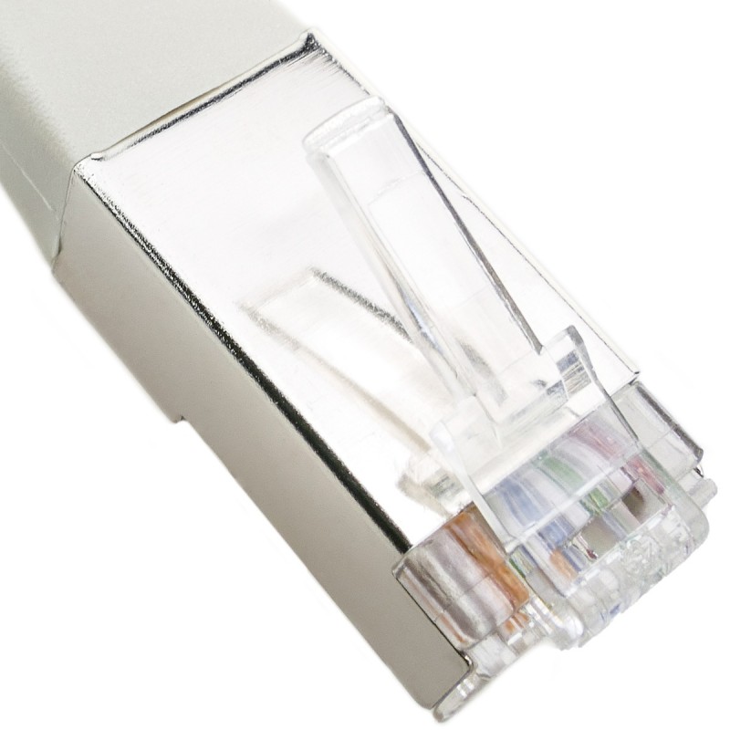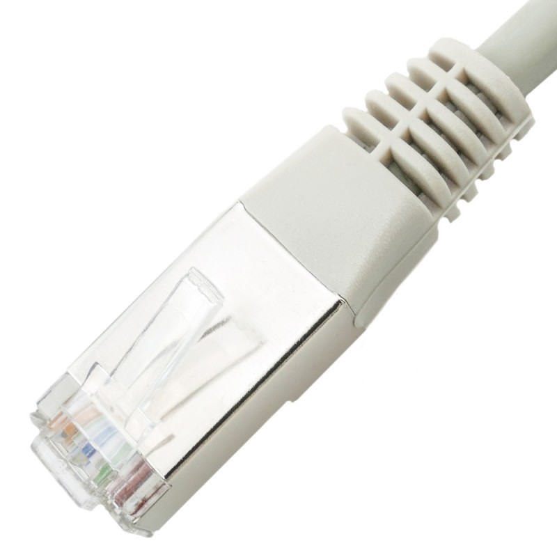- Cable par trenzado flexible y apantallado (FTP) de Categoria 5e montado con conectores RJ45-Macho y cubierta de goma en ambos extremos.