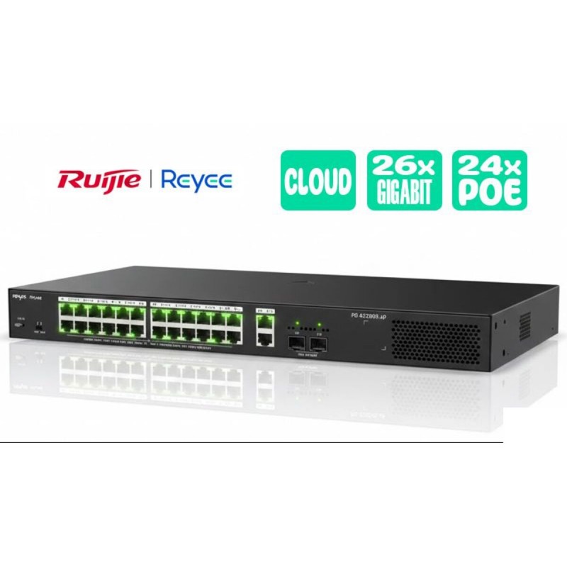 Los switches RG-ES228GS-LP y RG-ES228GS-P son Gigabit PoE+, ideales para redes corporativas que exigen rendimiento, organización y ahorro de costes.Con 28 puertos Gigabit, 24 de ellos PoE+, alimentan y conectan cámaras IP, teléfonos VoIP y puntos de acceso con una instalación sencilla y una gestión eficiente.Robustos, silenciosos y fiables, son la opción ideal para pymes, oficinas, hoteles y centros educativos que buscan un alto rendimiento con una excelente relación calidad-precio, con la calidad de Ruijie Networks (línea Reyee). Disponibles con potencias PoE+ de 250W y 370W.